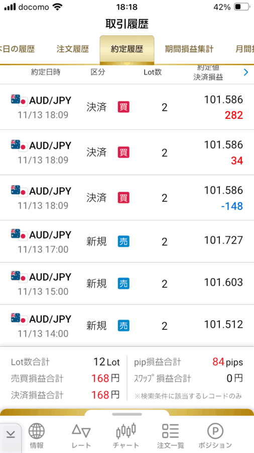 18時9分に、3つすべて決済し、結果として利益を上げることができました。