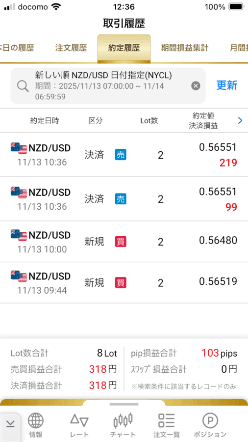上記画像の取引履歴より、ポイントを簡単に紹介します。
