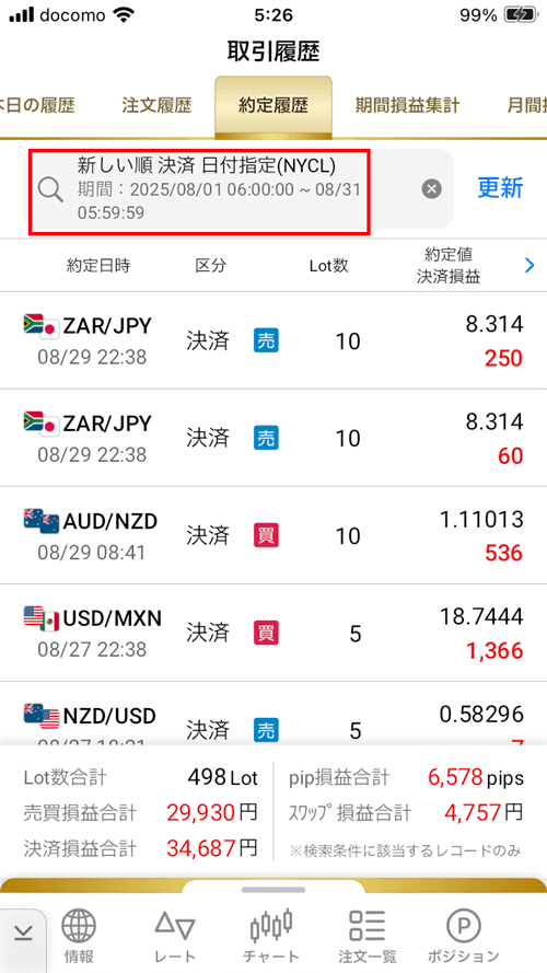 日付指定期間が、7月1日~8月1日、5:59:59になっていますが、ニューヨーク市場のクローズ時間に合わせたもので、8月1日分は含まれておりません。