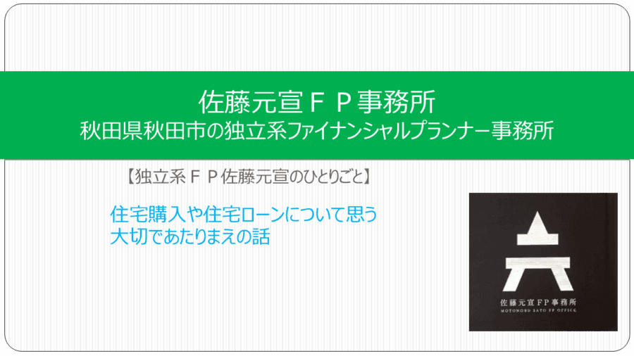 住宅購入や住宅ローンについて思う大切であたりまえの話【独立系FP佐藤元宣のひとりごと】