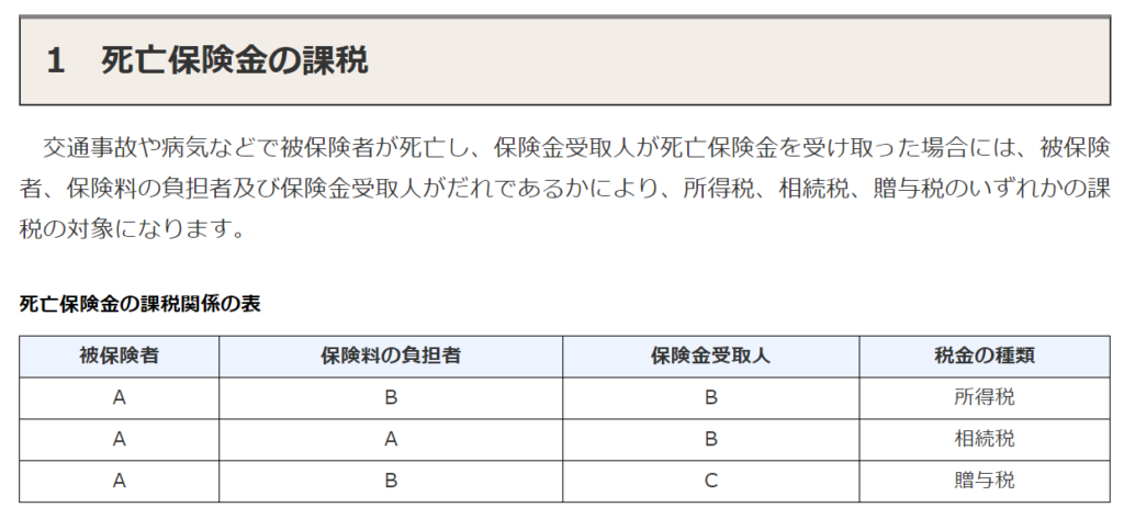 出典 国税庁 No.1750 死亡保険金を受け取ったとき 1 死亡保険金の課税より引用
