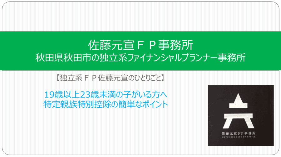 19歳以上23歳未満の子がいる方へ【独立系FP佐藤元宣のひとりごとは特定親族特別控除の簡単なポイントです】