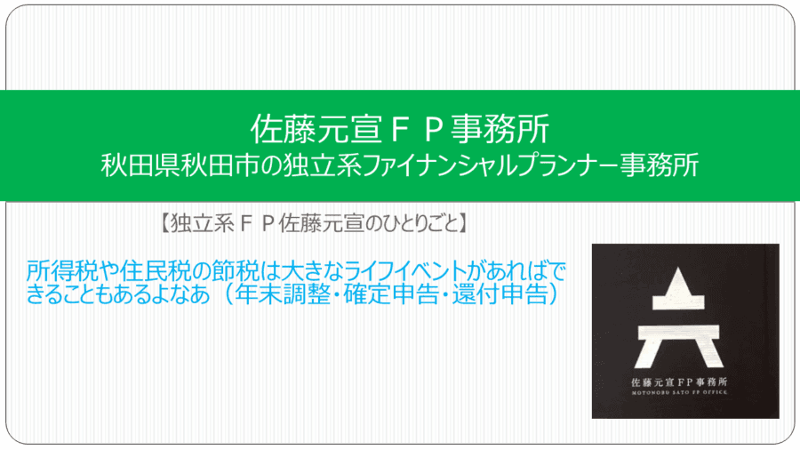 所得税や住民税の節税は大きなライフイベントがあればできることもあるよなあ【独立系FP佐藤元宣のひとりごと】