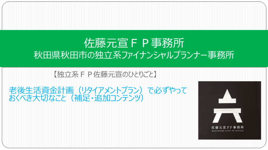 老後生活資金計画(リタイアメントプラン)で必ずやっておくべき大切なこと【独立系FP佐藤元宣のひとりごと】