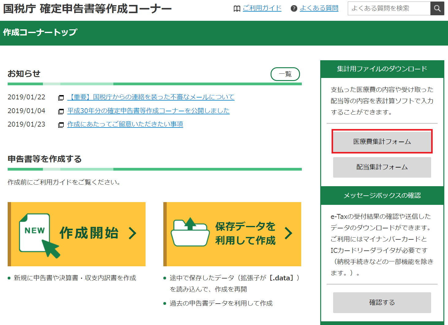 確定申告書を確定申告書等作成コーナーから作成する方法とは?医療費控除の申告例も合わせて紹介